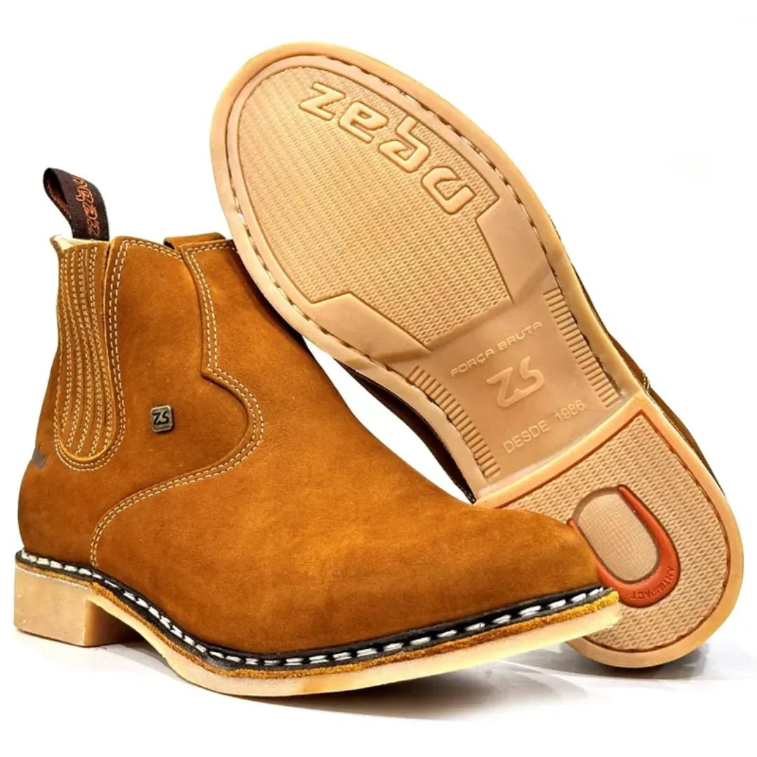 Essa bota não é só couro e costura. É o resultado de uma fabricação que pensa em cada detalhe: couro selecionado, solado resistente, costura reforçada. E o melhor: não precisa ficar se preocupando em 'amansar' a bota. Desde o primeiro dia, ela já é firme, mas confortável.