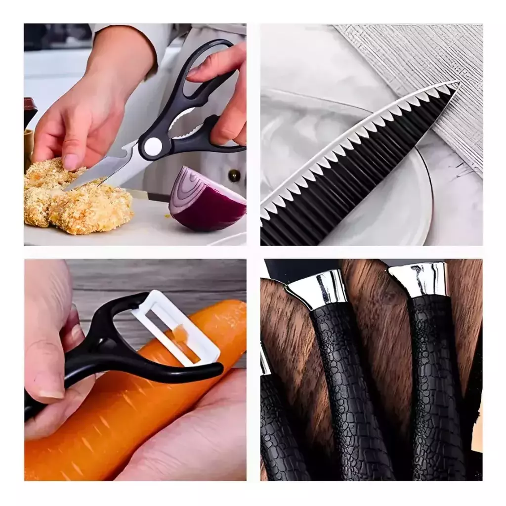Se você é apaixonado por culinária ou simplesmente adora preparar refeições deliciosas, o Jogo de Facas é o que faltava para levar sua experiência na cozinha para o próximo nível. Seja você um cozinheiro casual ou um chef exigente, este kit oferece precisão e facilidade em cada corte, tornando sua rotina culinária ainda mais prazerosa e eficiente.